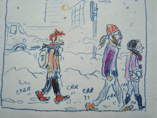 Sylvain-Moize. We didn't just relax there enjoying the snow, no no, we had a very intensive comics workshop with pupils from the Valmiera Art School, where Sylvain introduced the art of creating comics with very interesting and fun methods. After those two days we took Sylvain to the Latvian Art Academy to hold one more workshop in the capital. The participants were just amazing and kuš! can look forward to great contributions from young Latvian artists!